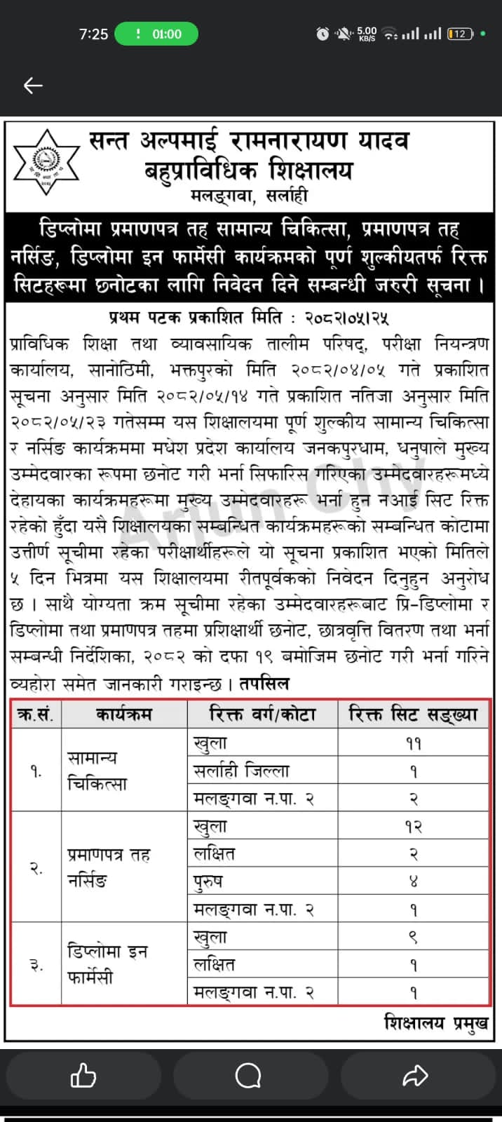 बैकल्पिक काेटामा निवेदन दर्ता सम्बन्धमा