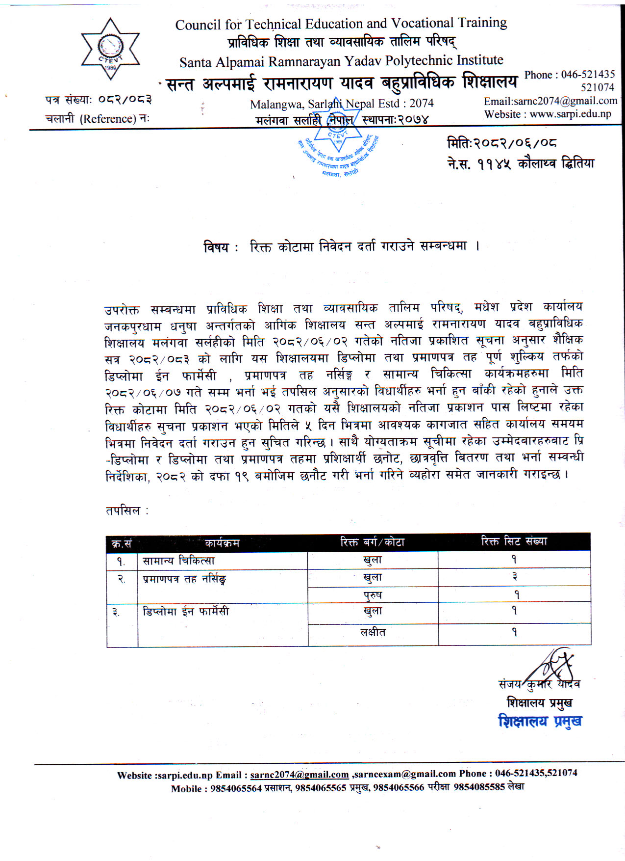 रिक्त काेटामा निवेदन दर्ता सम्बन्धमा दोस्रो पटको लागी प्रकाशन सुचना
